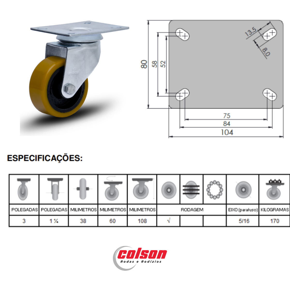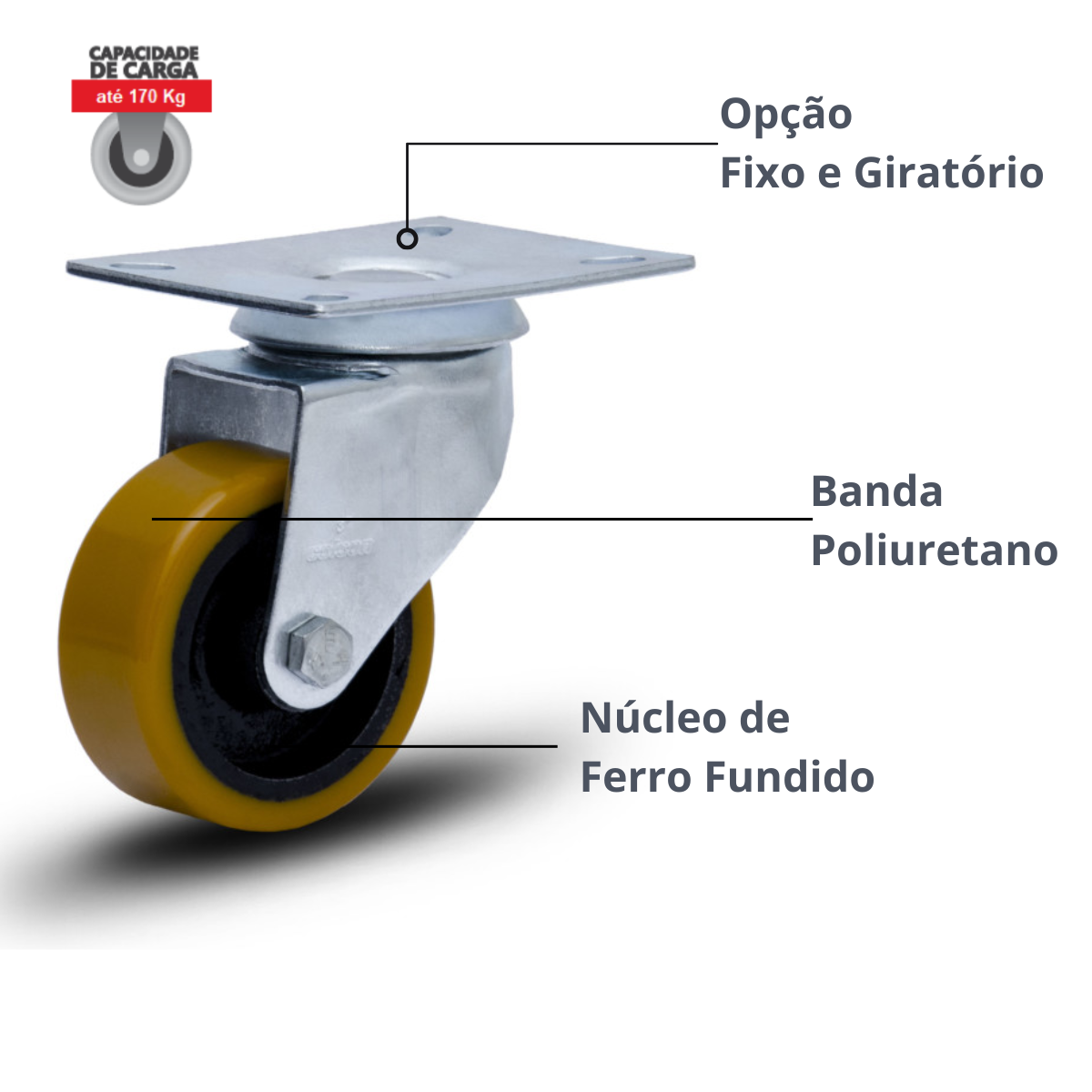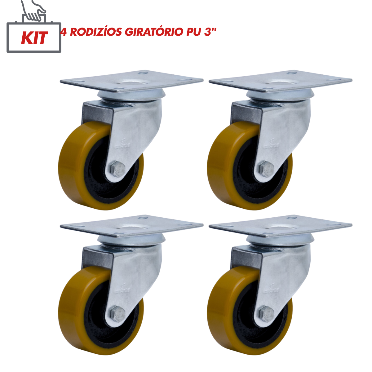 Seja o primeiro a avaliar “Kit 4 Rodízios Giratório 3” Pu Placa 680kg Reforçado Colson”